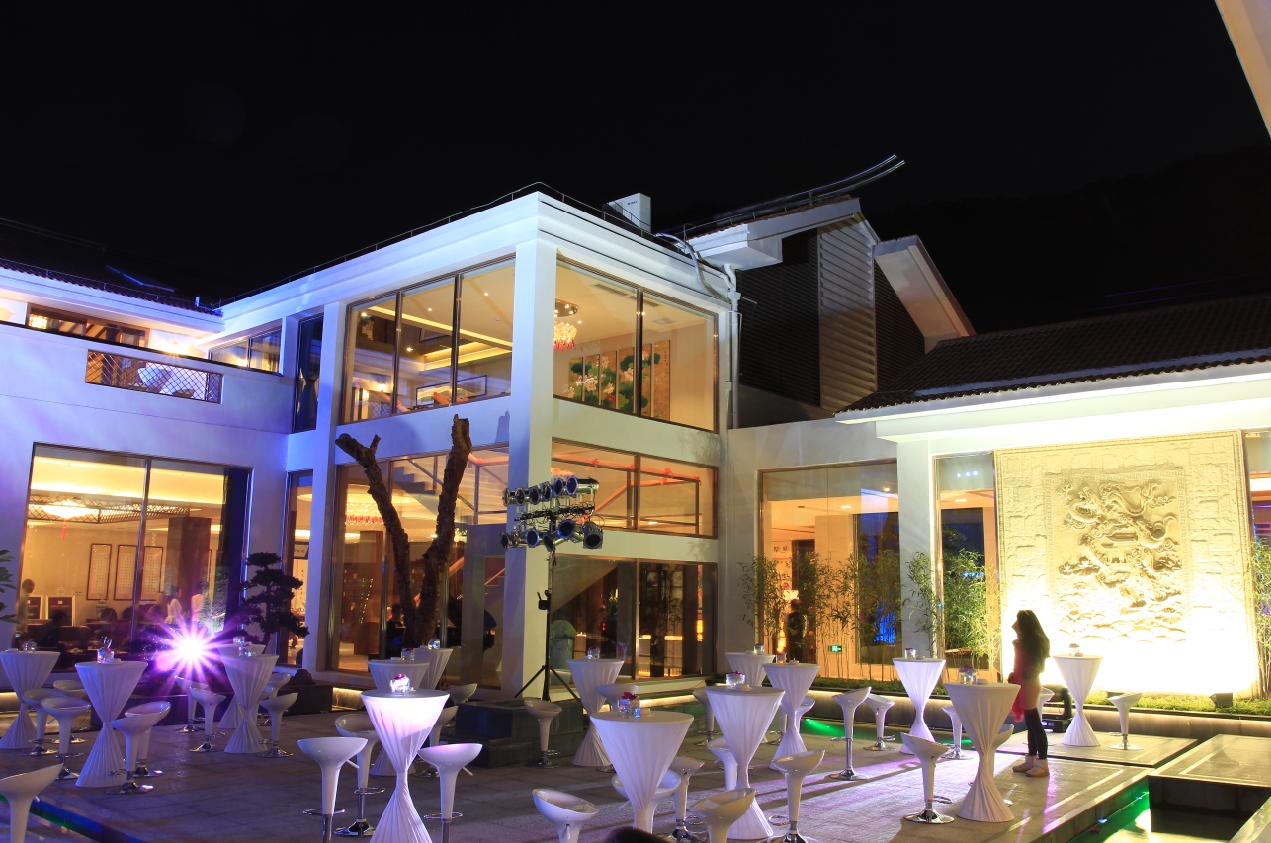 令人流連忘返的自由品鑒之旅結(jié)束后,唐榮文化中心立即將賓客引入桌餐區(qū),為饑腸轆轆的他們呈上由專業(yè)大廚精心烹制的各式美食。寬敞的露臺上,擺滿高腳桌椅,賓客們在山林美景的映襯之下,自取自食、自斟自飲,或高談闊論,或低聲細(xì)語,把酒言歡、觥籌交錯(cuò),在品嘗極致美味的同時(shí),傾聽菲律賓爵士樂隊(duì)的浪漫歌聲,期待著更加精彩的舞臺表演的開始。